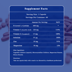 This N-Acetyl L-Cysteine (NAC) nutritional supplement is formulated to support liver health, boost antioxidant levels, and enhance immune function. NAC is a precursor to glutathione, a potent antioxidant that helps detoxify the body. The addition of Vitamin C, Vitamin E, Selenium, Zinc, and Magnesium further supports immune health, protects against oxidative stress, and maintains overall well-being.